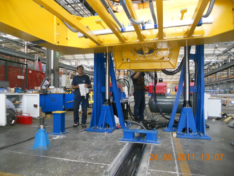 Sorta di doppio carroponte con 2 travi scatolati da 25 m unite in testa a formare un rettangolo che ruota intorno all'asse + lungo.